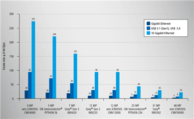 現(xiàn)代CMOS傳感器在高靈敏度,低暗噪聲和高幀速率以及非常高的動(dòng)態(tài)范圍內(nèi),可提供出色的圖像質(zhì)量。這些優(yōu)點(diǎn)與10 GigE界面一起在快速過(guò)程中發(fā)揮了優(yōu)勢(shì),例如在60 fps時(shí)高達(dá)4K的視頻應(yīng)用以及運(yùn)動(dòng)分析和虛擬現(xiàn)實(shí)應(yīng)用中。